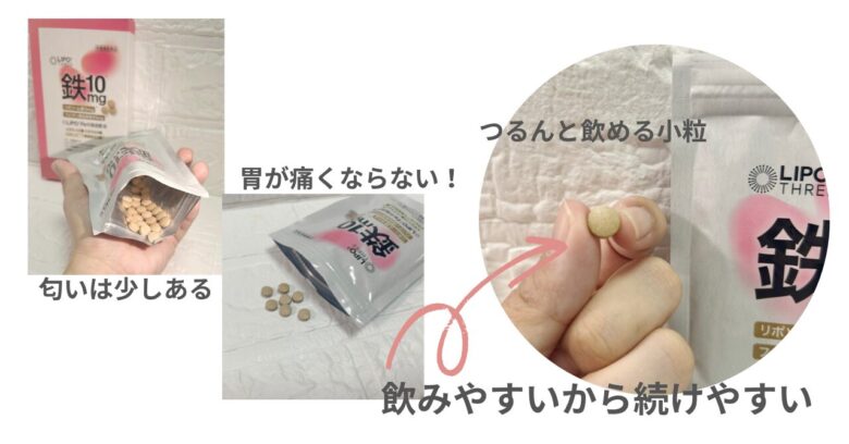 - 匂いについて:正直に言うと、袋を開けた瞬間は「あ、鉄サプリの匂いだ」と感じました。